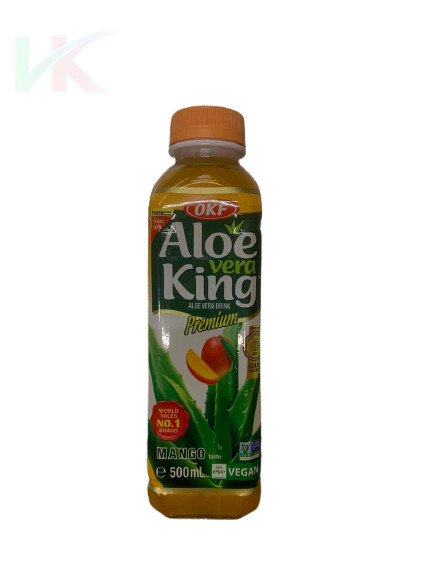 Aloe Vera mangó 500ml" egy ital, amely aloe vera zselét és mangó ízű ízesítést tartalmaz. Az ital összetevői általában a következők: