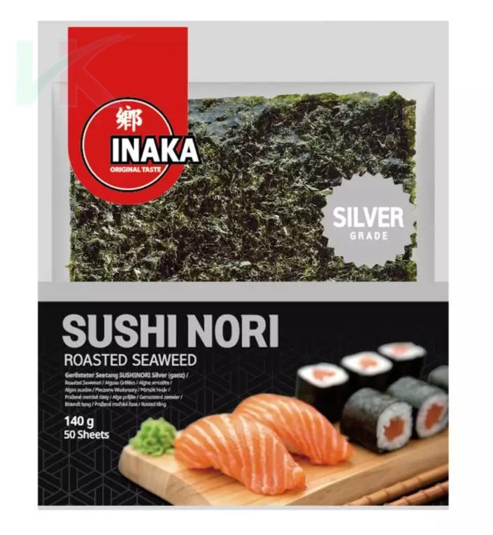 Az INAKA Silver Sushi Nori pörkölt alga kiváló választás sushi készítéshez otthon vagy vendéglátásban. A csomag 50 teljes lapot tartalmaz, összesen 140 g minőségi tengeri algával. A Silver kategória ideális azok számára, akik kedvező ár mellett szeretnének megbízható minőséget.