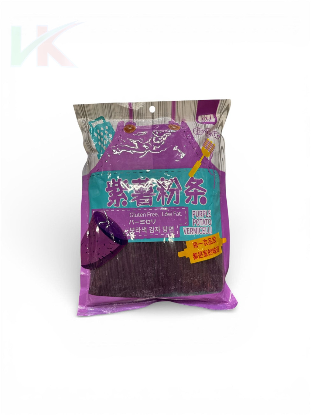 A vékony lila édesburgonyából készült üvegtészta kiváló minőségű édesburgonya-keményítő felhasználásával készül, amely különleges színt és jellegzetes textúrát ad a tésztának. A gondosan feldolgozott alapanyag biztosítja, hogy a tészta főzés után áttetszővé váljon, miközben megőrzi rugalmasságát és enyhén rágós állagát. A vékony szálak egyenletesen puhulnak meg, így a tészta nem esik szét, és nem tapad össze könnyen.