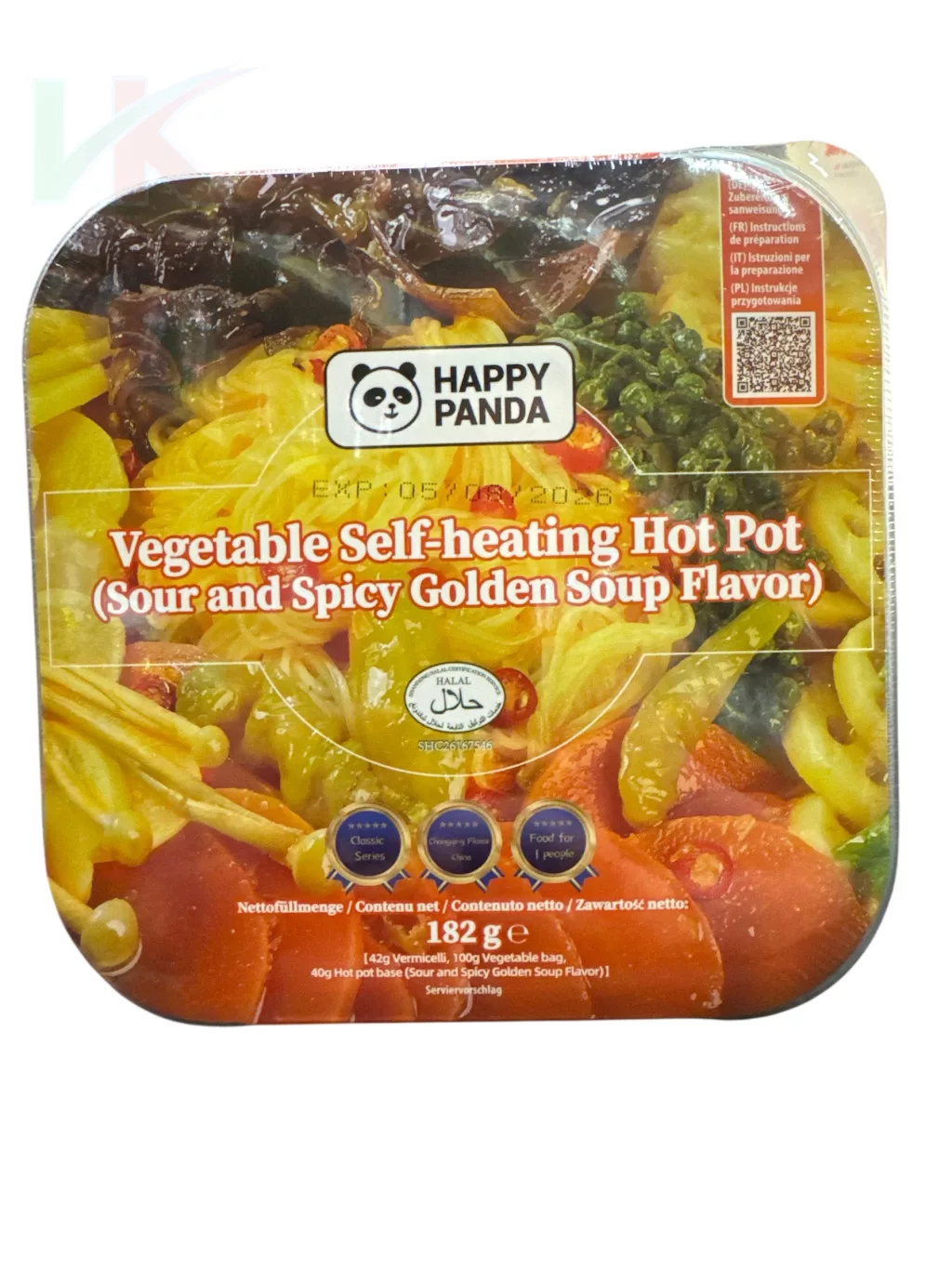 A Happy Panda önmelegítő zöldséges hot pot savanyú és csípős leves alappal egy praktikus és innovatív ázsiai instant étel, amely lehetővé teszi, hogy bárhol forró, ízletes hot pot fogást készítsünk. A termék különlegessége az önmelegítő rendszer, amelynek segítségével tűzhely vagy mikrohullámú sütő nélkül is elkészíthető a leves.
