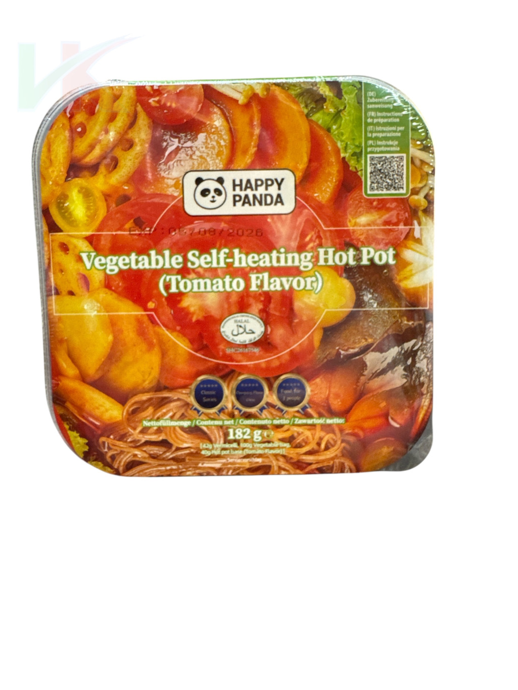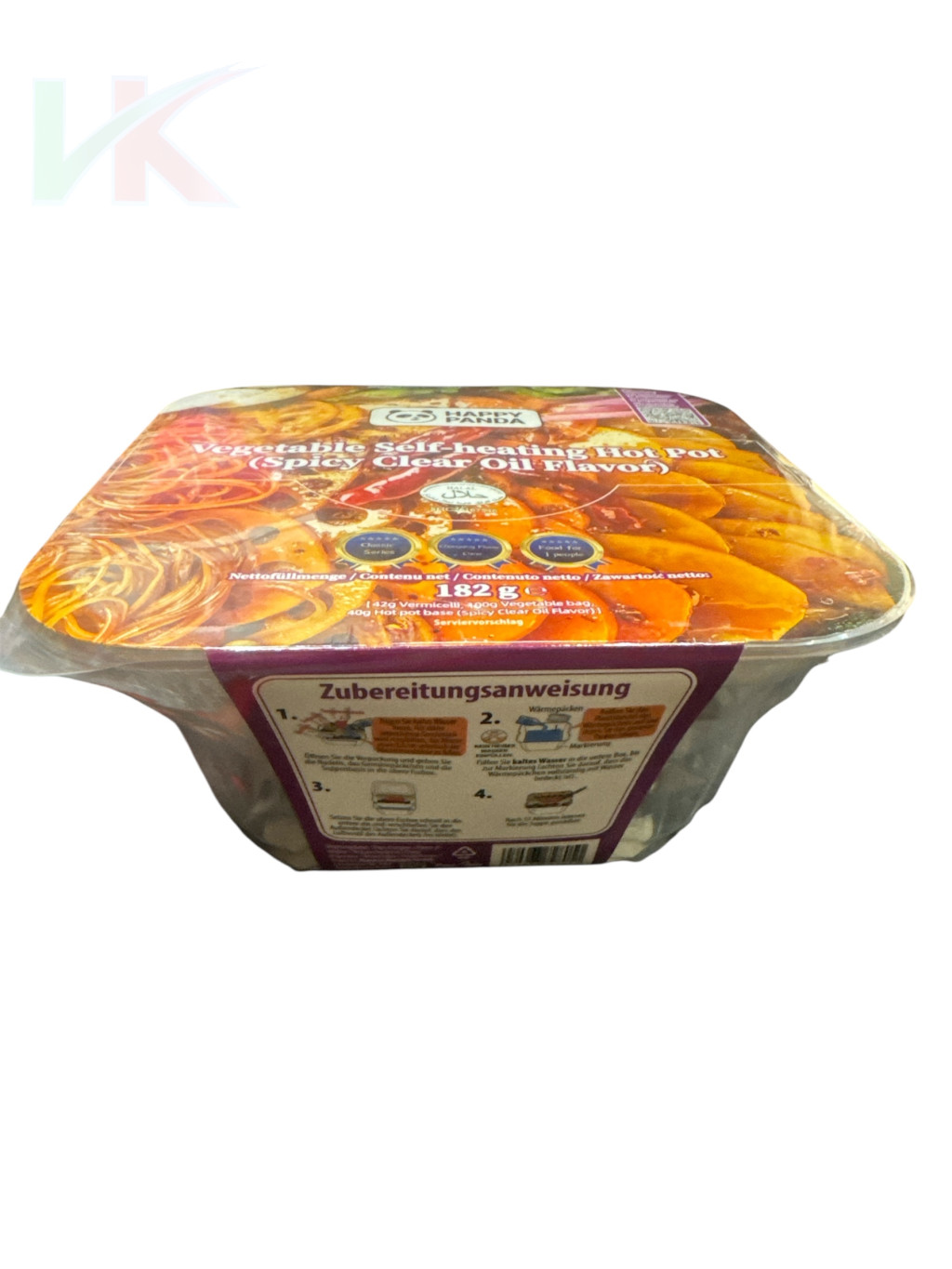 A Happy Panda önmelegítő hot pot egy praktikus instant étel, amely különösen népszerű az ázsiai street food kultúrában. A csomag tartalmaz egy speciális melegítő tasakot, amely vízzel érintkezve hőt termel, így felmelegíti az ételt.